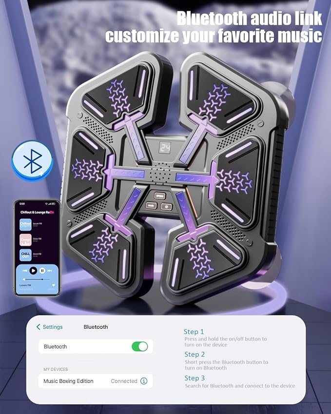 Premium Materials: Crafted from high-strength materials (PP+PU+acrylic), the music punching machine features shock absorption and noise reduction capabilities, ensuring your safety during training. After the battery capacity is upgraded and debugged, there is no need to worry about the battery life